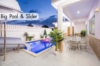 ที่พักสัตหีบแบบพูลวิลล่า 6 ห้องนอน 15-20 ท่าน มีสระเด็ก มีโต๊ะพูล & สไลเดอร์ ในสระว่ายน้ำส่วนตัวขนาดใหญ่ พร้อม คาราโอเกะ สามารถปิ้งย่างได้ ใกล้ทะเลหาดบ้านอำเภอ และหาดบางเสร่เพียงแค่ 5-6 กม. สามารถเดินทางไปหาดทรายแก้ว หาดสอ ใกล้พระพุทธรูปแกะสลักหน้าผาเขาชีจรรย์และมีสถานที่ท่องเที่ยวที่อยู่ใกล้ในระยะไม่เกิน 10-20 นาที หลากหลายที่