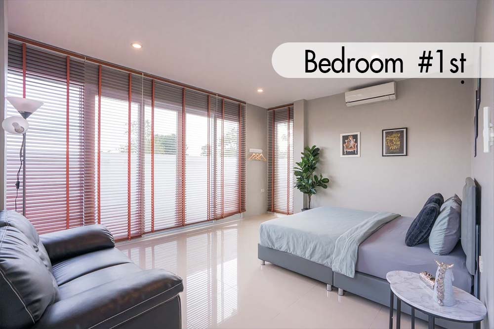 ห้องนอน 1 : เตียง 6 ฟุต 1 เตียง (ห้องน้ำในตัว)