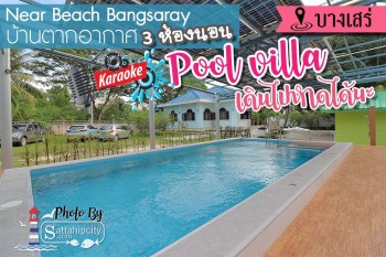 ที่พักพูลวิลล่า แบบบ้านพักตากอากาศริมหาดาบางเสร่ สัตหีบ ใกล้ทะเล 200 เมตรเดินไม่ถึง 3 นาทีก็ได้เล่นน้ำทะเลหาดบางเสร่ รองรับได้ 10 - 15 ท่าน มีสระว่ายน้ำส่วนตัว มีสระเด็ก พร้อมคาราโอเกะ เป็นบ้านพักตากอากาศชั้นเดียวในพื้นที่กว้างมาก กว่า 350 ตรว. บรรยากาศชายทะเล ท่านจะเป็นผู้โชคดีที่ได้ตื่นแต่เช้าไปเดินเล่นชายหาดได้ก่อนใคร หรือจะนั่งรอดูพระอาทิตย์ตกน้ำ หรือนั่งเล่นชิล ๆ บรรยากาศริมหาดตอนกลางคืนก็ได้ตลอดเวลา