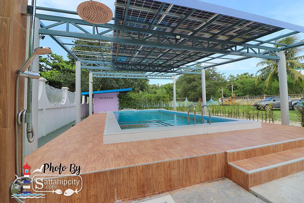 - มีสระน้ำสระน้ำเกลือขนาดใหญ่ 4 x 8 เมตร ลึก 1.2 เมตร