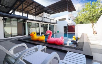 - บ้านพักพร้อมสระน้ำ มีสระเด็กแยก ติดแอร์ทั้งหลัง
