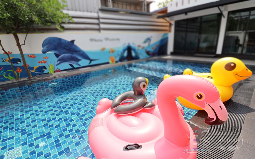 สระน้ำกว้างใหญ่ พร้อมห่วงยางแฟนซี
