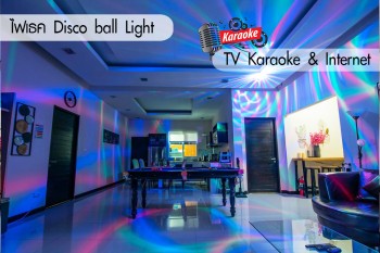 ห้องโถงใหญ่ติดแอร์ ทีวี อินเทอร์เน็ต คาราโอเกะ โต๊ะพูล