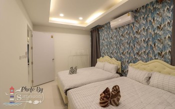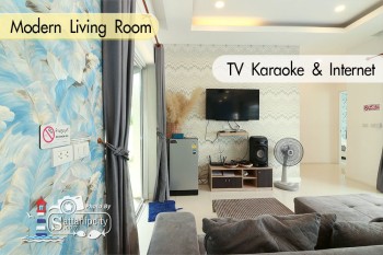 Saty พูลวิลล่า&คาราโอเกะ (N5) พูลวิลล่าใหม่ สไตล์โมเดิร์น พูลวิลล่าที่ใกล้แหล่งท่องเที่ยวทั้งในพัทยาและสัตหีบ เหมาะสำหรับการพักผ่อนแบบครอบครัว ปาร์ตี้สังสรรค์ เน้นโทนสีฟ้าสบายตา จะเซลฟี่มุมไหนก็ดูชิค กับบรรยากาศชิว ๆ ใกล้ทะเลหลายที่ขับรถเพียง 5-10 นาที ก็ถึงทะเลสวย ๆ ใกล้บ้าน ที่พักในเขตนาจอมเทียน อ.สัตหีบ มีสระว่ายน้ำ แบบโมเดิร์นสไตล์ ใกล้ สวนน้ำโคลัมเบีย พิคเจอร์ส อควาเวิร์ส , สวนน้ำรามายณะ (ramayana water park) , สวนนงนุชพัทยา ท่านสามารถไปเที่ยว หาดทรายแก้ว หรือ หาดบางเสร่ ได้โดยสะดวกจากที่พักได้ในเวลาเพียง 10-15 นาที นอกจากนี้ท่านยังสามารถไปเที่ยว ฟาร์มแกะ Swiss Sheep Farm ได้โดยสะดวกจากที่พักในระยะเวลาเพียง 10 - 15 นาทีได้อย่างสะดวกสบาย