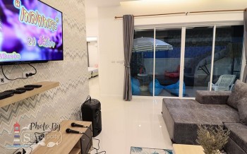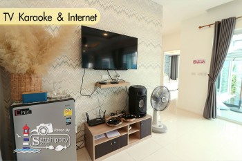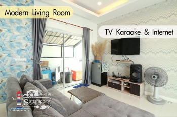 - 1 ห้องนั่งเล่น เป็นห้องโถงขนาดใหญ่ โซฟา ทีวี ไวไฟ มีคาราโอเกะ , ไฟเทค พร้อมสำหรับปาร์ตี้เล็ก ๆ