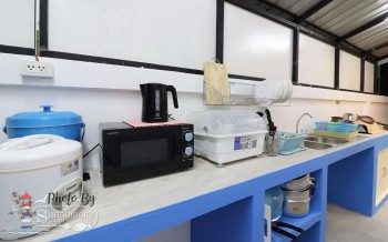 - 1 ห้องครัว พร้อมอุปกรณ์ครัวครับครัน ตู้เย็น หม้อหุงข้าว กาน้ำร้อน ไมโครเวฟ ถังน้ำแข็งขนาดใหญ่ จาน ชาม ช้อน ส้อม *** มี ครก สาก