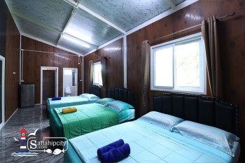 ที่พักหมู่คณะเหมารีสอร์ทแบบพูลวิลล่า บางเสร่ สัตหีบ เหมาที่พักเป็นหมู่คณะ ได้มากถึง 80 ท่าน ที่พักบางเสร่มีสระน้ำกว้าง พร้อมสไลเดอร์ โต๊ะสนุ๊ก มีคาราโอเกะ รองรับหมู่คณะได้มากถึง 80 ท่าน มีห้องพักหลายแบบ ทั้งห้องรวม และแบบแยก 2 ท่านด้วย มีอุปกรณ์ครัวครบครันพร้อมให้ปิ้งย่างอาหารทะเล ใกล้สถานที่ท่องเที่ยวในสัตหีบ และอยู่ใกล้หาดบางเสร่ และหาดทรายแก้วเพียงแค่ 10 นาทีเท่านั้น
