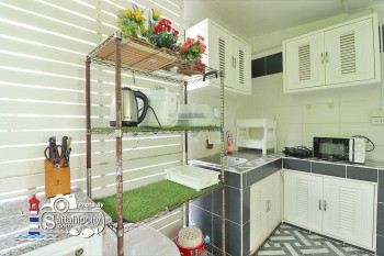 - 1 ห้องครัว พร้อมอุปกรณ์ครัวครบ ไมโครเวฟ, ตู้เย็น ,เตาไฟฟ้า, กระทะ ,จาน,ชาม ,หม้อ ,ครก ,แก้ว,ช้อน