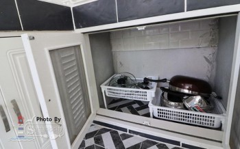 มีครัวในตัวบ้าน อุปกรณ์ครัวครบ ถังน้ำแข็ง เตาไฟฟ้า