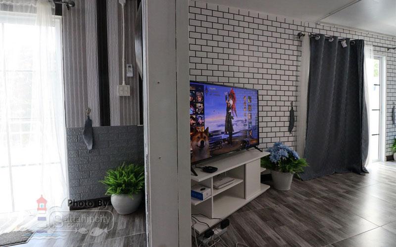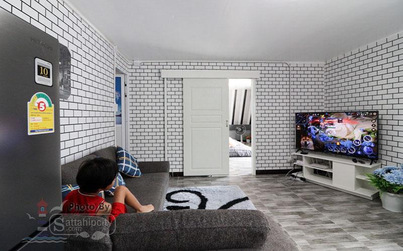 - มีห้องโถงขนาดใหญ่ติดแอร์ โซฟา ทีวี