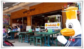 ร้านก๋วยเตี๋ยวเป็ดตุ๋นเจ๊อ้วน บางเสร่ หน้าร้าน อยู่ติดถนนใหญ่ ทางผ่านก่อนจะไปเที่ยวหาดบางเสร่ ร้านอยู่ด้านซ้ายมือ